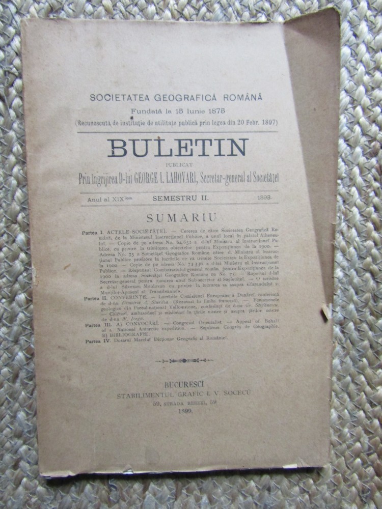 SOCIETATEA GEOGRAFICA ROMANA , BULETIN PUBLICAT PRIN INGRIJIREA D-LUI GEORGE I. LAHOVARI ANUL AL XIX-LEA SEMESTRU II 1898