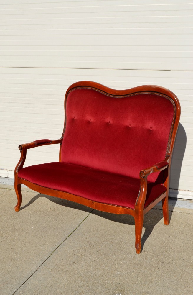 Sofa in stil Louis Philippe, din lemn, spatar inalt, perioada 1950.
