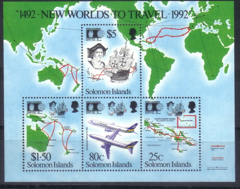 SOLOMON 1992, Aviatie, Corabii, Columb, bloc neuzat, MNH