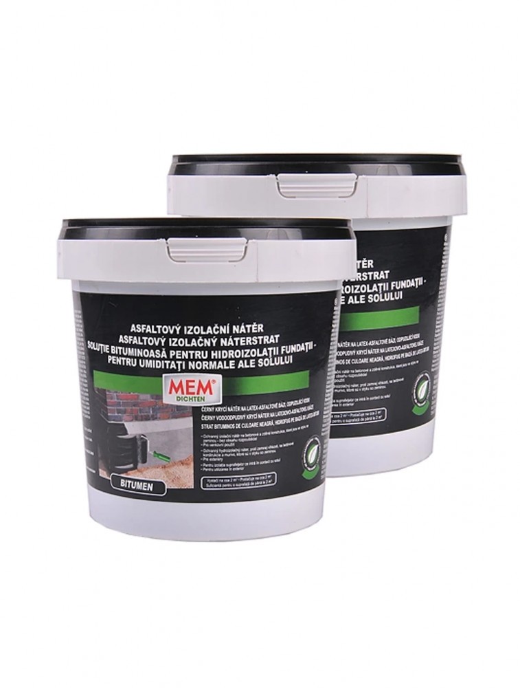 Solutie bituminoasa pentru hidroizolatii fundatii , reprezinta o solutie de protectie a suprafetelor de beton si zidarie în zona de contact a acestora cu umiditatea solului. Acesta formeaza un strat care nu permite trecerea apei, de tipul unei folii. Stratul pe care il formeaza nu crapa si este rezistent impotriva substantelor agresive in contact cu betonul. Avantaje: creaza un rezistent impotriva substantelor agresive cantitate ramasa se poate pastra si reutiliza pana la 12 luni Avertisment: Respectati indicatiile privind siguranta si riscurile, inscrise pe etichetele recipientelor si fisele de date. Se aplica masurile de siguranta valabile in cazul manevrarii de produse chimice A se evita bataia directa a razelor solare in timpul aplicarii A se evita ploaia in timpul aplicarii si uscarii, ar putea provoca deteriorari ( ex: spalare) Instructiuni de utilizare: Produsul trebuie bine amestecat inainte sa-l aplici. Daca il folosesti pe o suprafata absorbanta, aplici mai intai amorsa MEM Strat preliminar pe baza de bitum si apa (1:1). Dupa uscare, aplici MEM Solutie bituminoasa pentru hidroizolatii fundatii cu ajutorul unei role, perii sau al unui vaporizator. Astepti ca fiecare strat sa se usuce inainte de al aplica pe urmatorul. Pentru zonele ce prezinta risc de fisurare, aplica membrana de armatura din fibra de sticla, in al doilea strat.