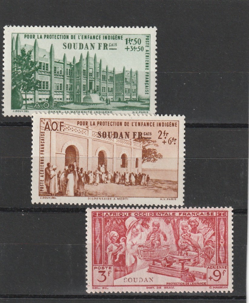 Soudan , Colonii franceze 1942 - Omnibuse , Ajutorul pentru copii , serie 3 valori, dantelate , MNH , Mi.137-139