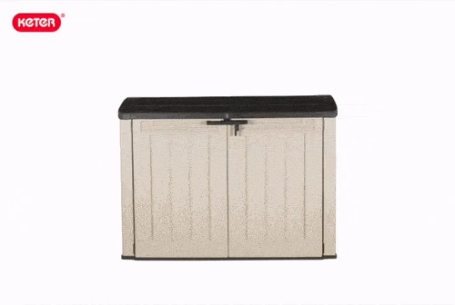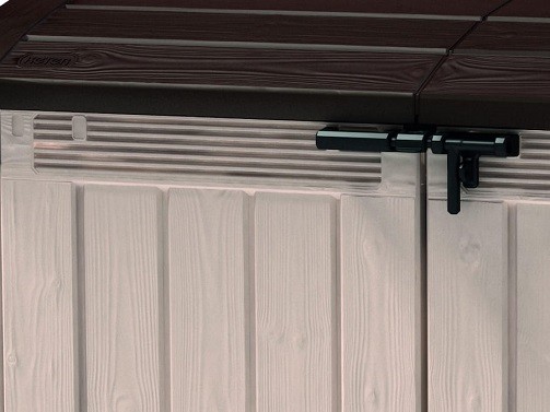 Dulapul de grădină Store It Out Ultra se deschide ușor datorită suportului hidraulic. Lățimea totală a ușilor duble este de 151,5 cm. Un alt avantaj al ușilor duble este că pot fi fixate cu un zăvor. Capacul dulapului de grădină este echipat cu un element care permite deschiderea simultană a recipientelor din interior.
