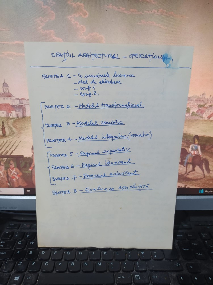 Spațiul arhitectural operațional, manuscris 1+4 pagini, circa 1985, 207