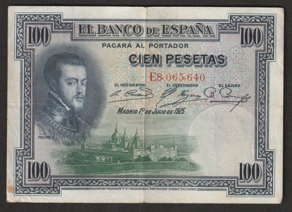 Spania, 100 pesetas 1925_regele Filip al II-lea _E8, 065,640