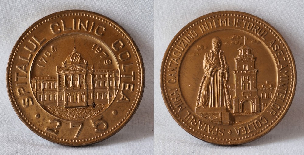 Spatarul Mihai Cantacuzino & spitalul Coltea, medalie emisa in anul 1979