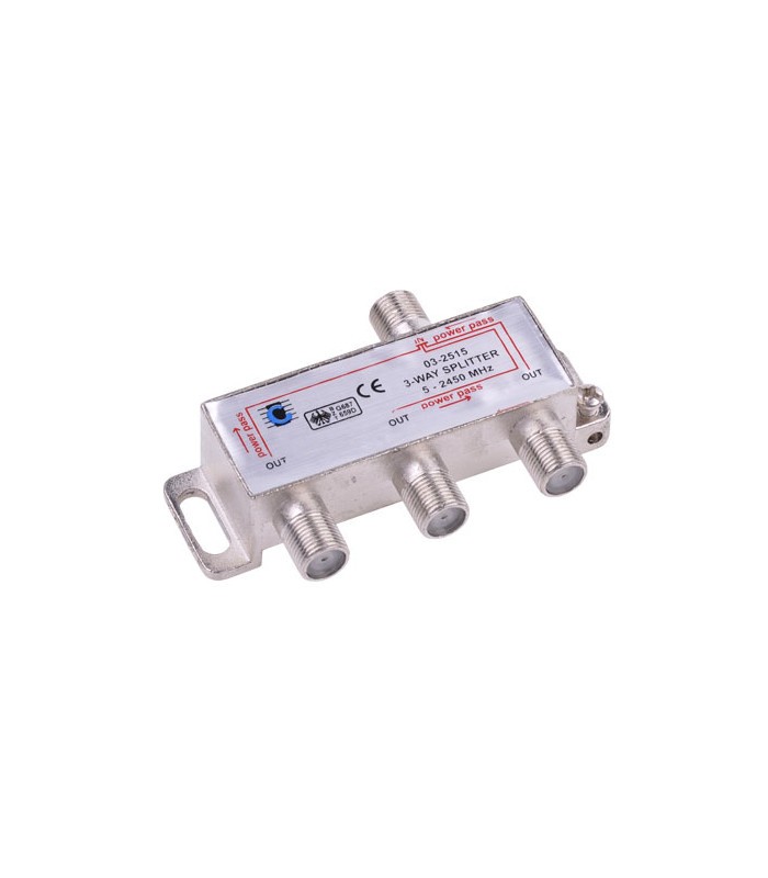 Splitter cu 3 cai, Power Pass, frecventa de lucru 5-2450 MHz.