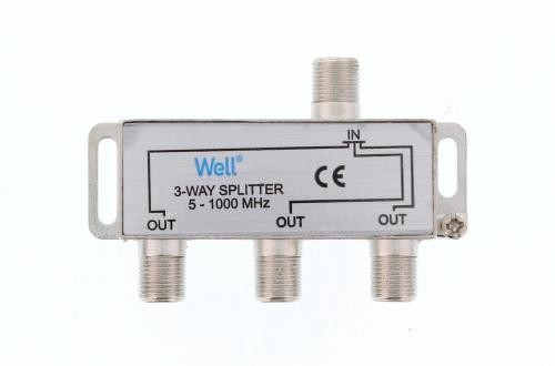 Spliter CATV 3 cai 1000Mhz Well. Distribuitor pentru retea CATV, cu conexiune F,3 cai. Atenuare intrare-iesire