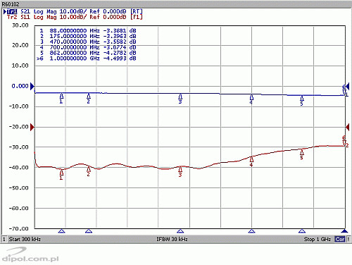 Atenuarea sa de doar 3.2 dB în toată banda de 5-1000 MHz este excelentă pentru un splitter din această gamă de preţuri. Conectarea la splitter se face prin mufe de tip F care fac parte din carcasa sa de aluminiu turnat.