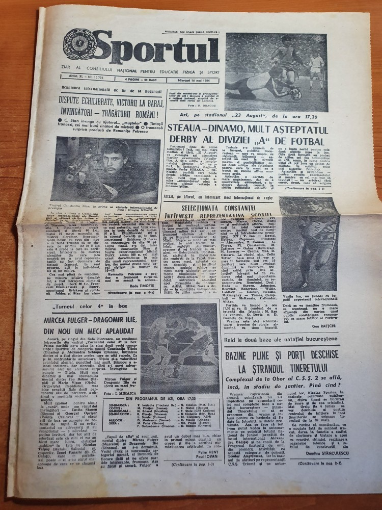 sportul 16 mai 1984-articol despre derby-ul dinamo-steaua,turneul celor 4 la box