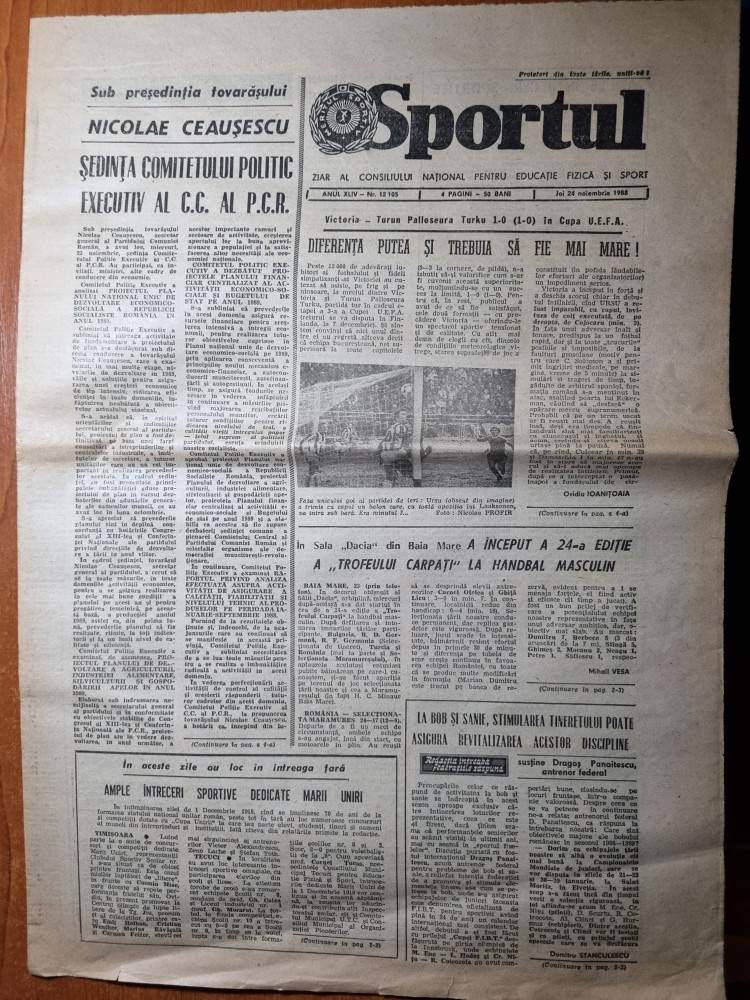 sportul 24 noiembrie 1988-victoria bucuresti-turun palloseura 1-0 in cupa UEFA