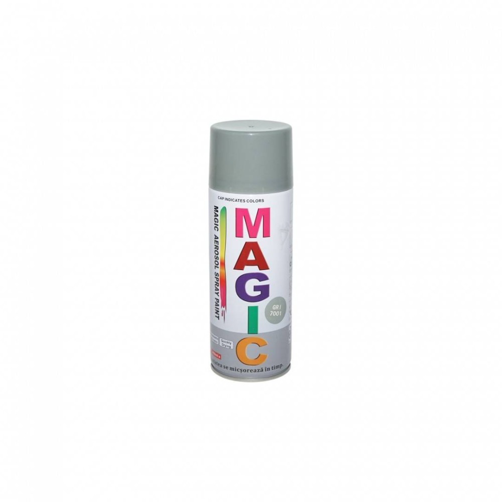 Spray vopsea Magic 450mlCod: 7001Culoarea vopselei este pe bulina din lateralul tubului.Caracterisitici: Vopsea de inalta calitate cu o excelenta aderenta pe suprafete metalice,sticla,plastic,fibra de sticla,lemn.Este usor de folosit. Are pierdere minima.Produce o suprafata uniforma si fina. Are rezistenta excelenta la agentii atmosferici si la abraziune. Uscare rapida!Instructiuni: Se curata suprafata de orice urma de murdarie,grasme,ulei sau praf.Izolati suprafetele vecine celei care urmeaza sa fie vopsita. Agitati recipientul timp de un minut si,de asemenea,agitati recipientul din cand in cand si in timpul aplicarii. Mentineti recipientul la o distanta de aproximaiv 15-25 cm de suprafata si aplicati un strat subtire de vopsea pentru a evita scurgerea acesteia. Se recomanda aplicarea a 2-3 straturi de vopsea,cu o perioada de uscare de minim 10 minute.Dupa folosire,intoarceti flaconul cu capul in jos si pulverizati pentru cateva secunde in aer pentru a preveni uscarea produsului pe pulverizator. Recomandam,de asemenea,prima data sa testati culoarea pe o hartie pentru a vedea daca se potriveste cu cea a obiectului de vopsit. Culoarea pe care o vedeti dumneavostra depinde de monitorul utilizat si de setarile acestuia. Nu suntem responsabili pentru posibilele diferente de culoare intre cea afisata pe monitorul dvs si cea a produsului.