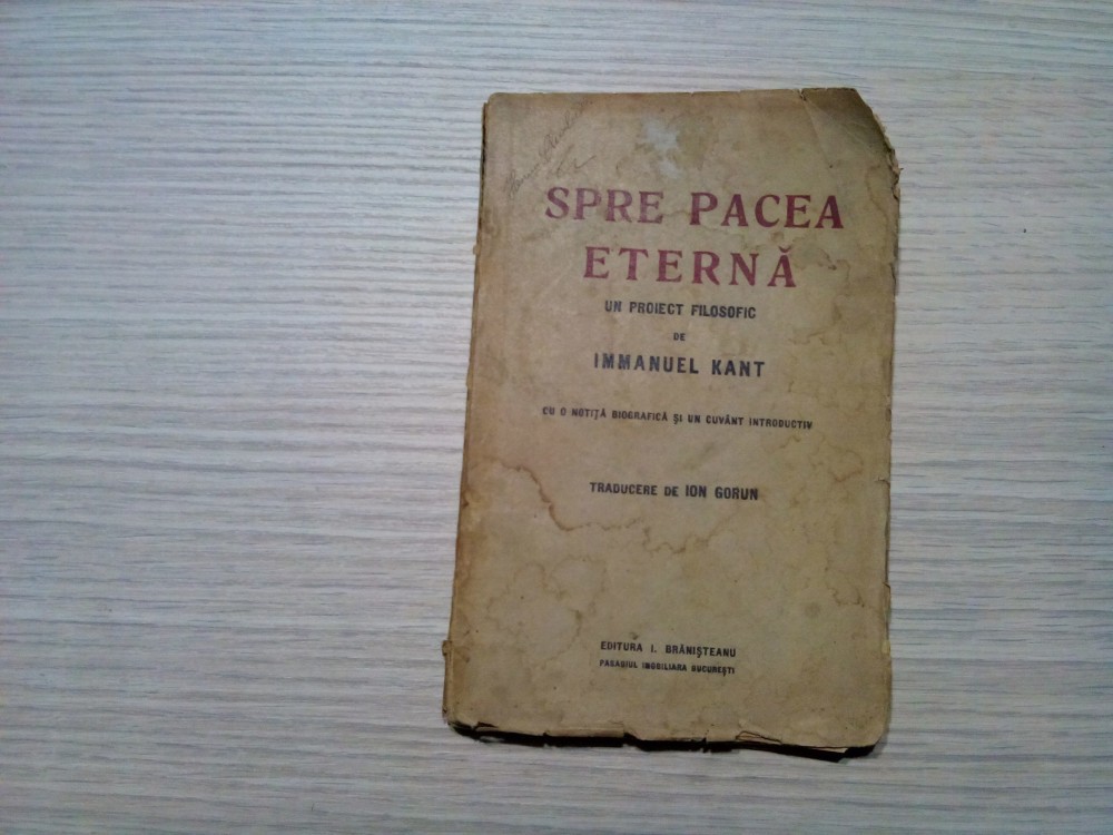 SPRE PACEA ETRNA un Proiect Filosofic - Immanuel Kant - Ion Gorun (traducere) - Editura I. Branisteanu, 1922, 73 p.