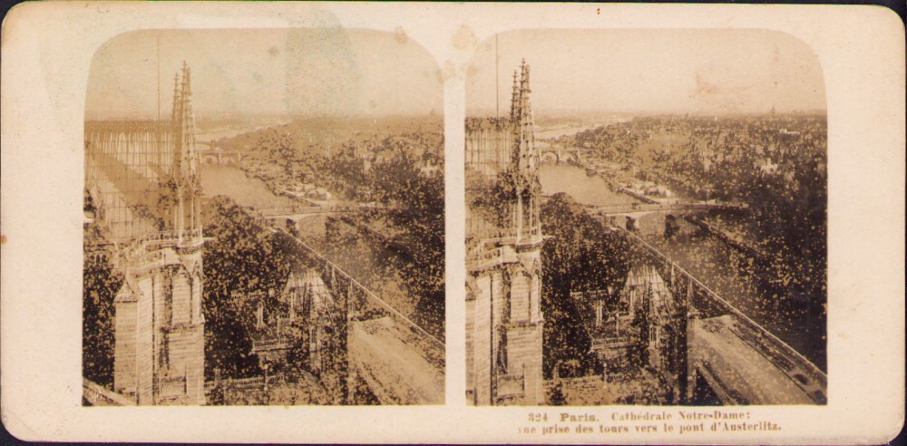 Paris, Cathédrale Notre-Dame, une prise des tours vers le pont d’Austerlitz, Stereoskopbilder-Institut C Wurfschmidt, Leipzig-Gohlis, stereoscopic photo