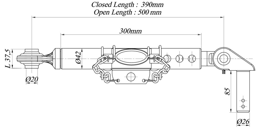 Stabilizator telescopic tirant lateral pentru New Holland, Case IH cod OEM 47123374, 87630689, 5093181