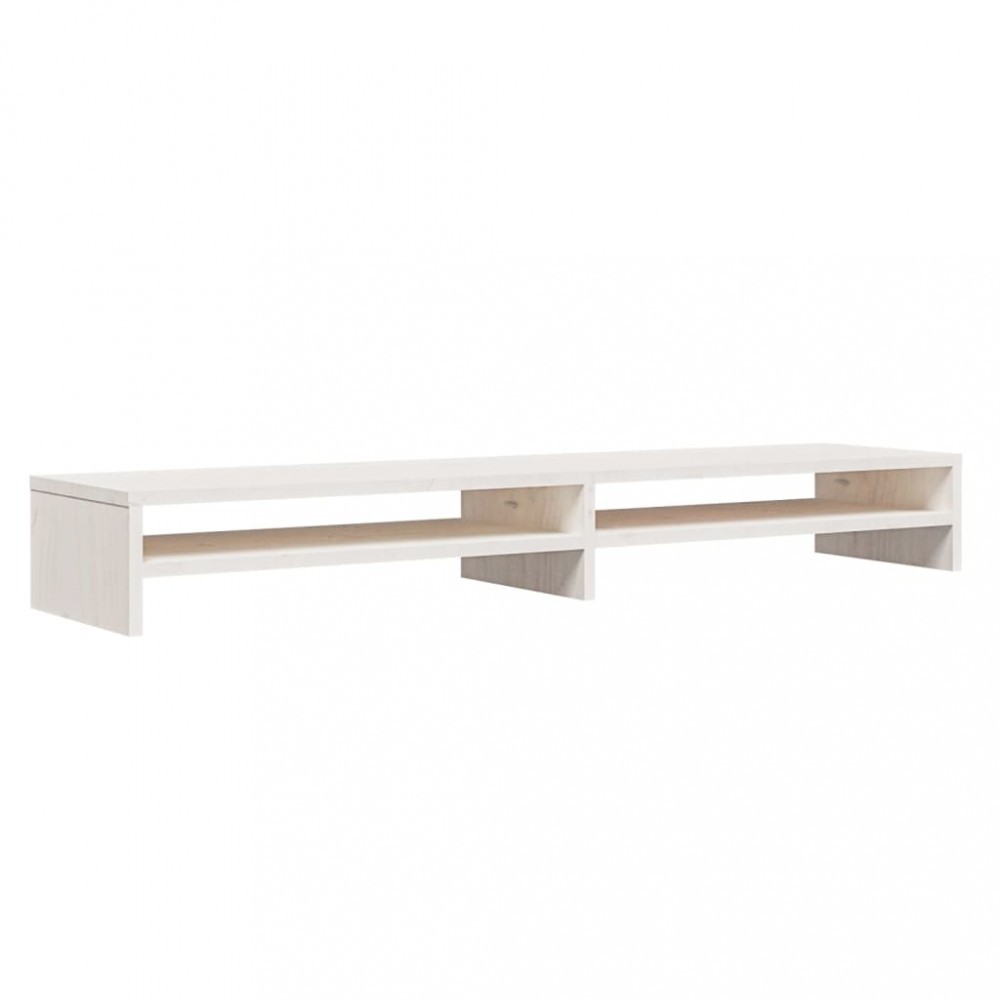 Stand pentru monitor, alb, 100x24x13 cm, lemn masiv de pin