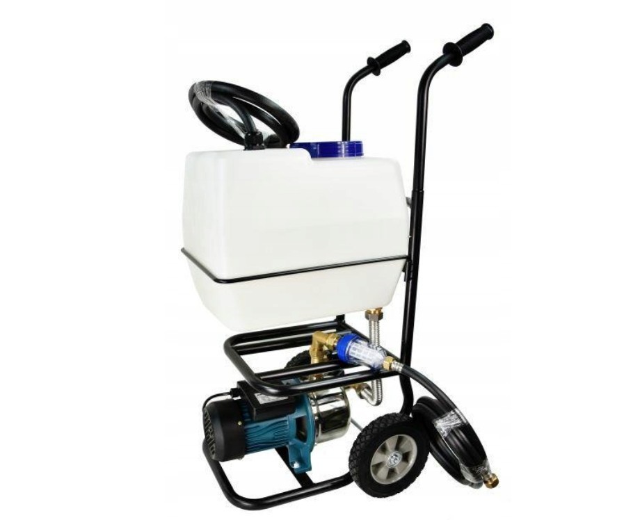 Set de clatire si umplere pentru instalarea panourilor solare, pompelor de caldura si circuitelor de incalzire centrala.. Statia poate fi utilizata pentru clatirea, umplerea, aerisirea si cresterea presiunii circuitelor hidraulice inchise cu un mediu care contine apa sau apa + glicol.. Practic si usor de utilizat. Debit: 60 l/min. Presiune: 7 bar. Inaltime de pompare: 50. Exista un prefiltru suplimentar in rezervor. Setul include:. Pompa AJ Inox 50/60 ,. Rezervor. Manometru. Supape care va permit sa inchideti/deschideti sistemul,. Doua furtunuri intarite cu etansare,. Filtru, teflon. Un cadru pe roti de cauciuc care faciliteaza miscarea si controlul instalatiei.. Pompa AJ 50 / 60 INOX de la IBO este un dispozitiv de inalta calitate cu motor monofazat (230 V) cu o putere de 1100 W si utilizare universala. Corpul pompei si arborele din piesa in contact cu apa sunt realizate din otel inoxidabil, precum si rotorul; modelul foloseste si fonta. Aceasta este o pompa solida, echipata din fabrica cu protectie termica instalata in infasurarea motorului, care protejeaza motorul impotriva supraincalzirii.. AJ 50/60 INOX:. Ridicare 50 m,. Capacitate: 60 l/min,. Putere motor 1100 W,. sursa de alimentare 230V,. Consum de curent: 3,2 A,. Conectori: 1x1". Greutate: 10,5. Rotor din otel inoxidabil AISI 304.