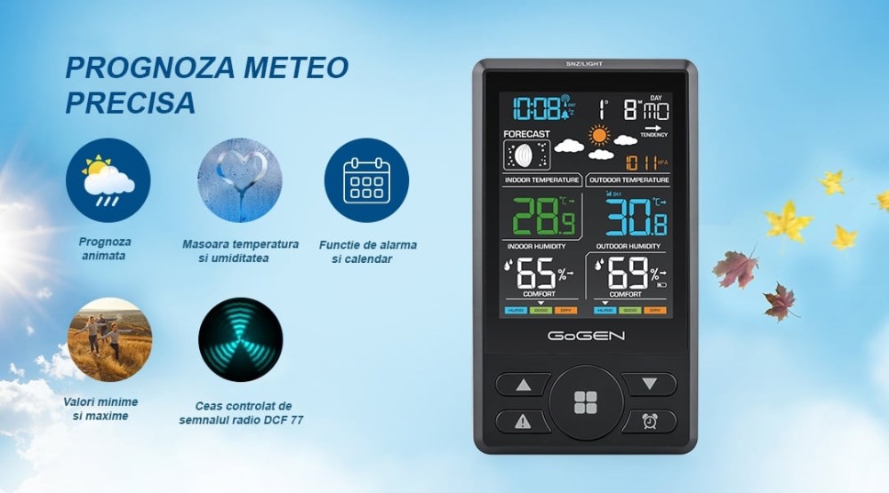 Statie meteo cu prognoza animata GoGEN ME 1250B, LCD color, senzor extern fara