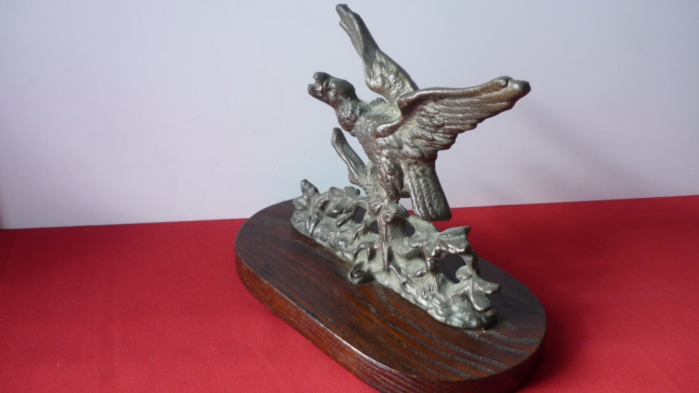 STATUETA DE BRONZ VULTUR PE SOCLU DE LEMN