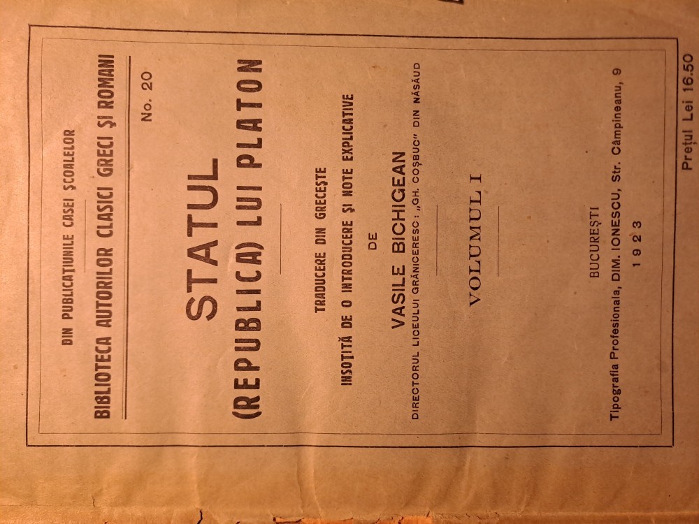 Statul ( Republica) lui Platon, editie Dim.Ionescu, Bucuresti;