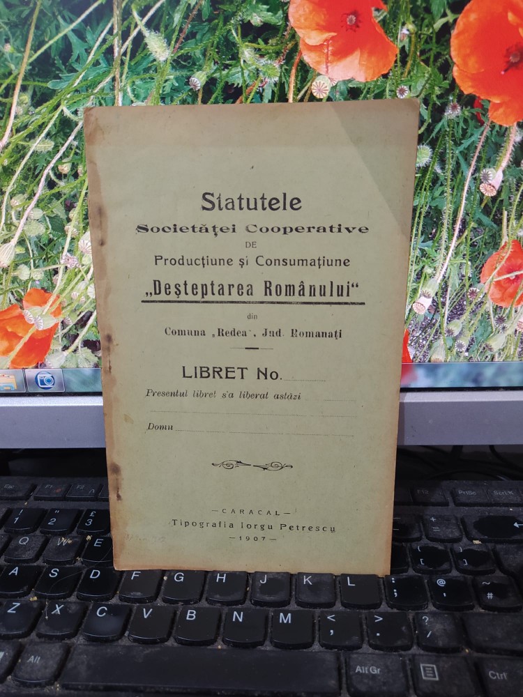 ... cooperative de producțiune și consumațiune din comuna redea, județul Romanați, Tipografia Iorgu Petrescu, 36 pagini, coperți originale din carton subțire.