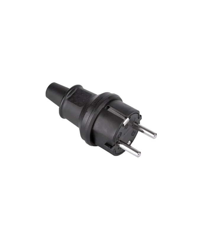 Stecher cauciucat, IP44, 16A/250 VAC, culoare neagra.