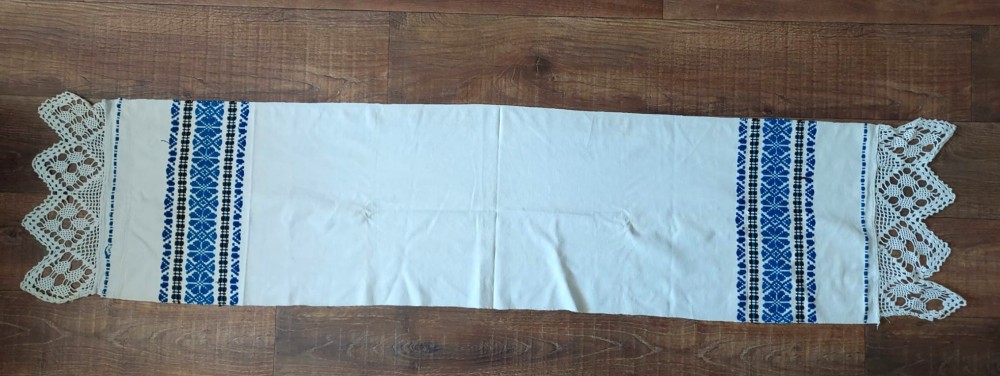 **Stergar tindeu vechi taranesc, panza tesuta in casa, dantela manuala Maramures