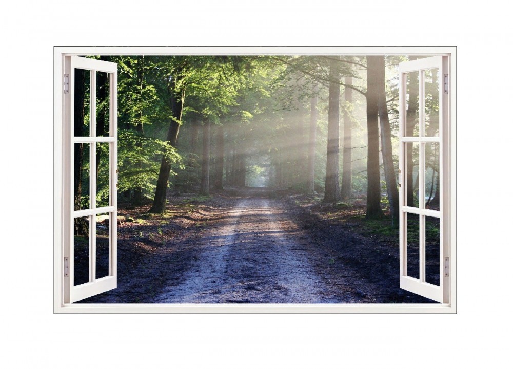 Sticker decorativ, Fereastra 3D, Padure, 85 cm, 517STK