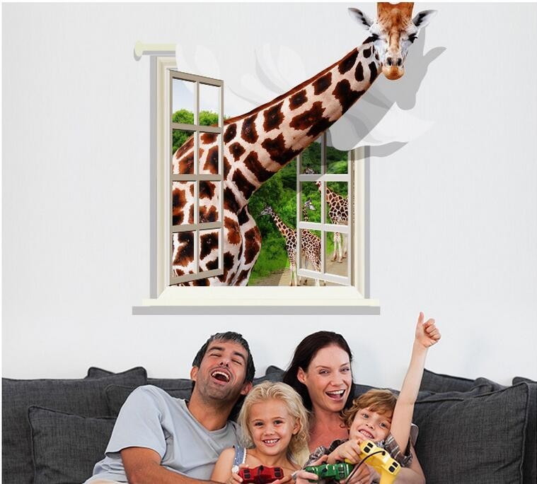 Sticker decorativ, fereastra cu girafa 79 cm, 58STK