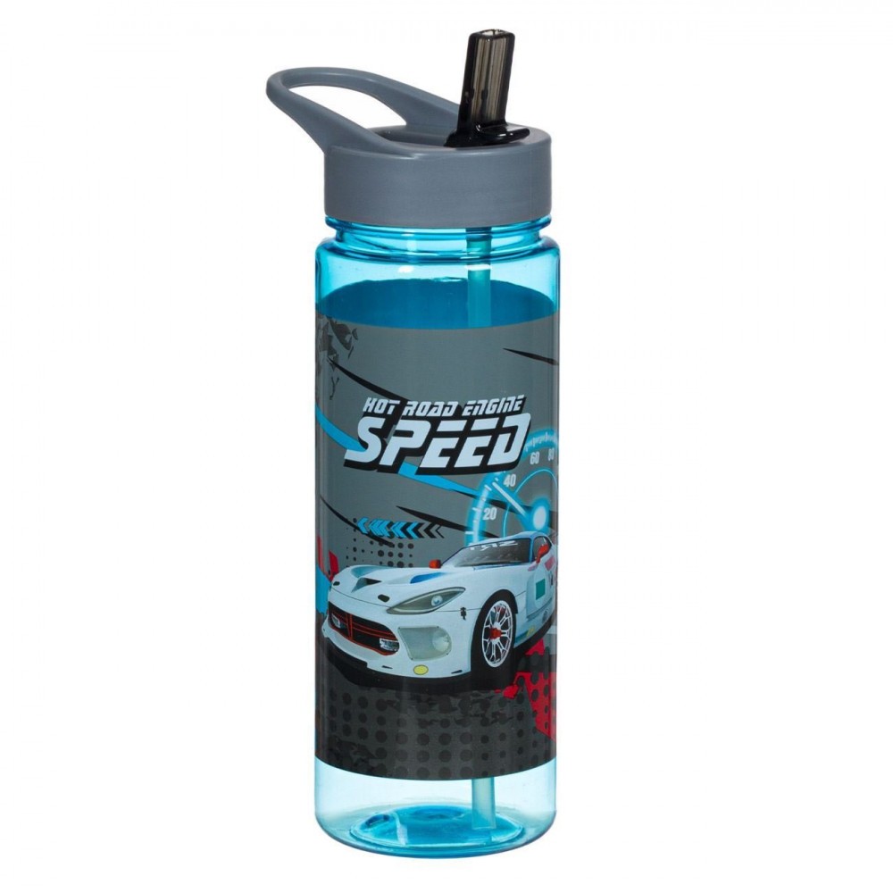 Sticlă Apă Flip Top, Model Mașină, Capacitate 650ml, Culoare Bleu-Gri, Plastic