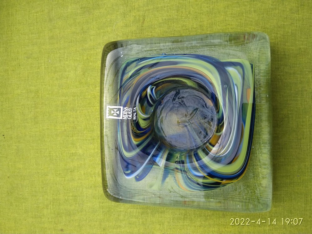 Este o scrumiera din sticla de marca MDINA GLASS MALTA frumos