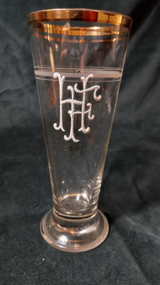 STICLA VECHE - PAHAR CU DECOR MONOGRAM EMAIL - POSIBIL CRISTAL BOHEMIA