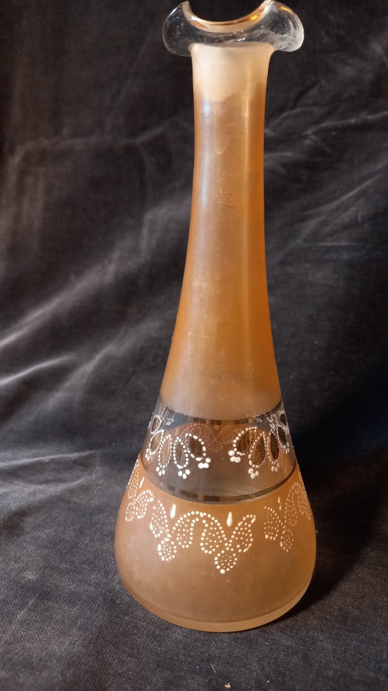 STICLA VECHE - VAZA CU DECOR EMAIL ALB - LUCRATA MANUAL - PIESA DE COLECTIE