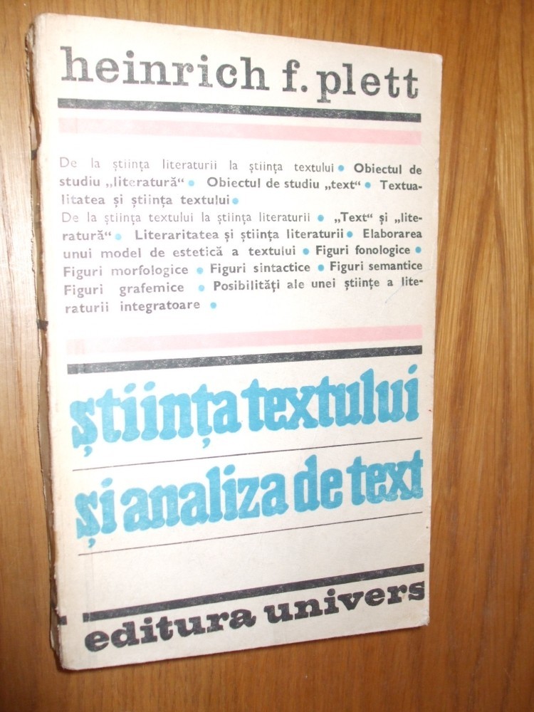 STIINTA TEXTULUI SI ANALIZA DE TEXT - Heirich F. Plett - 1983, 445 p.