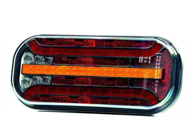 Stop lampa spate cu LED Fristom FT-230, 12/24V 214x94x38mm, montare surub cu spatiu 150mm, cablu 1m; indicator dinamic; cu indicator led; element ref