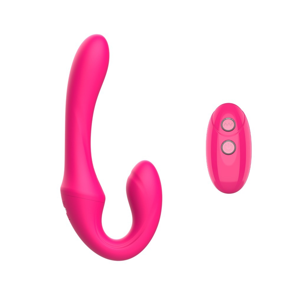 Strap-on cu vibratii fara hamuri potrivit pentru jocurile de cuplu, prevazut cu design elegant si nuanta atragatoare de roz romantic. Modelul nu dispune de centuri, astfel ca se poarta ca atare, sporind placerea ambilor parteneri prin faptul ca o parte s-ar folosi vaginal si cealalta parte pentru penetrarea partenerului. Ambele extremitati au o forma clasica si sunt disponibile pentru stimulare, avand fiecare cate un motor vibrator, astfel incat ambii parteneri se pot bucura de placere concomitent. Este confectionat din silicon catifelat si are o forma usor curbata ce este potrivita pentru stimularea atat a punctului G cat si a punctului P. Este prevazut cu 10 tipuri de vibratii ce se actioneaza facil din butoanele intuitive aplicate pe suprafata lui. De asemenea, functiile se pot regla si din telecomanda wireless cu care vine la pachet. Telecomanda are un aspect asortat si elegant, fiind foarte usor de folosit si de manevrat. Incarcarea se realizeaza prin cablul magnetic inclus. Siliconul din care este confectionat produsul, se simte foarte fin si placut in contact cu pielea, oferind o folosire confortabila, fara a crea vreun fel de disconfort sau neplacere. Se poate folosi si in jocurile solo, avand o forma perfecta pentru stimularea concomitenta a prostatei si perineului la barbati, dar si pentru stimularea simultana a punctului G si clitorisului la femei. Dimensiunile exacte se regasesc in imaginea alaturata. | Material: Silicon + ABS | Lungime: 19.5 cm | Diametru: 3 cm | Splashproof: Da | USB: Da | Culoare: Roz
