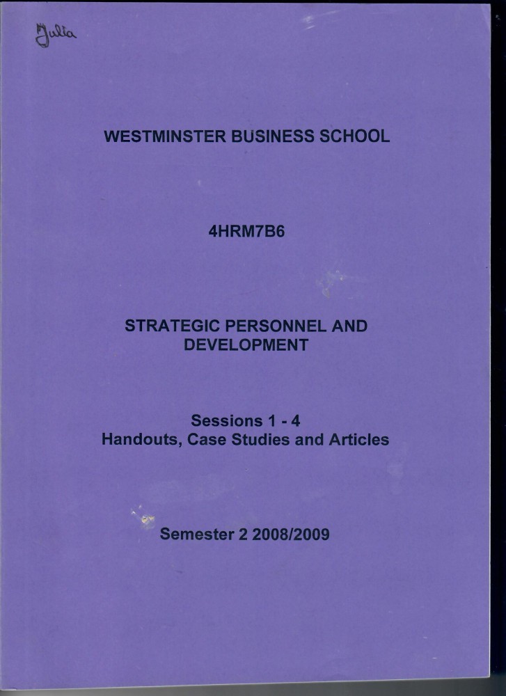 Strategic Personnel and Development, Westminster Business School, contine cateva sublinieri, format A4