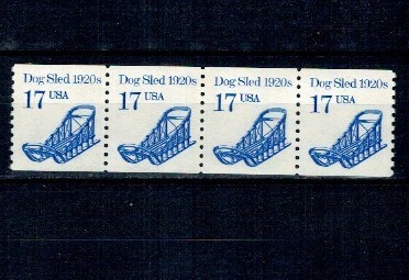 SUA 1986 - Uzual 17c, sanie trasa de câini, ștraif de 4 neuzat, din roll