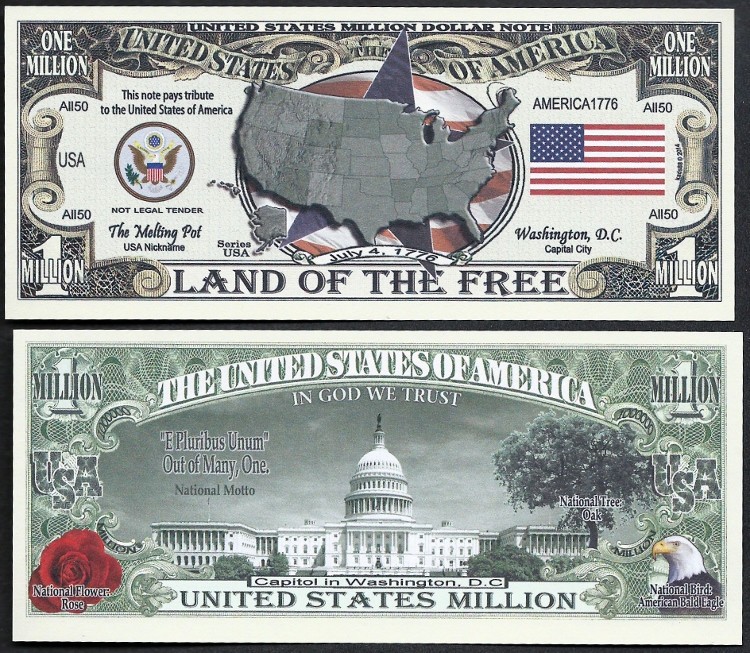 SUA = FANTASY NOTE = LAND OF THE FREE , TARA LIBERTATII - 2014 - UNC