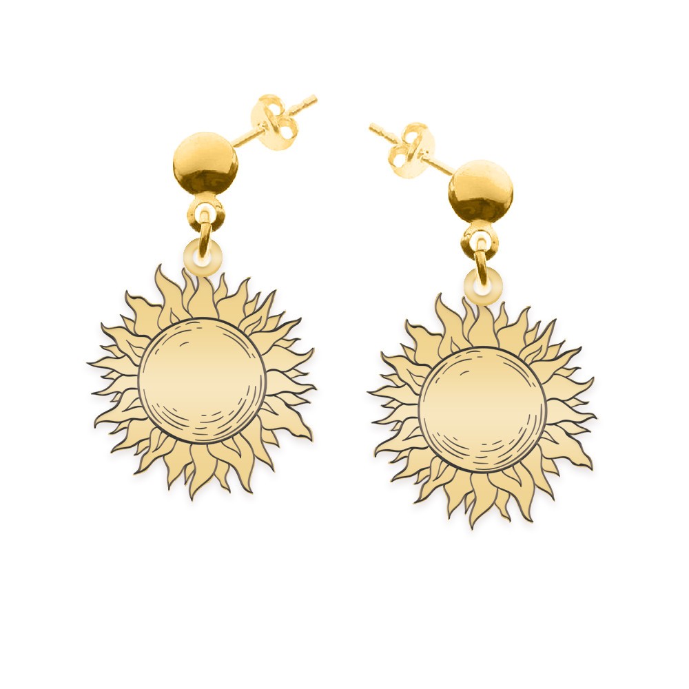 Sun - Cercei personalizati soare cu tija din argint 925 placat cu aur galben 24K