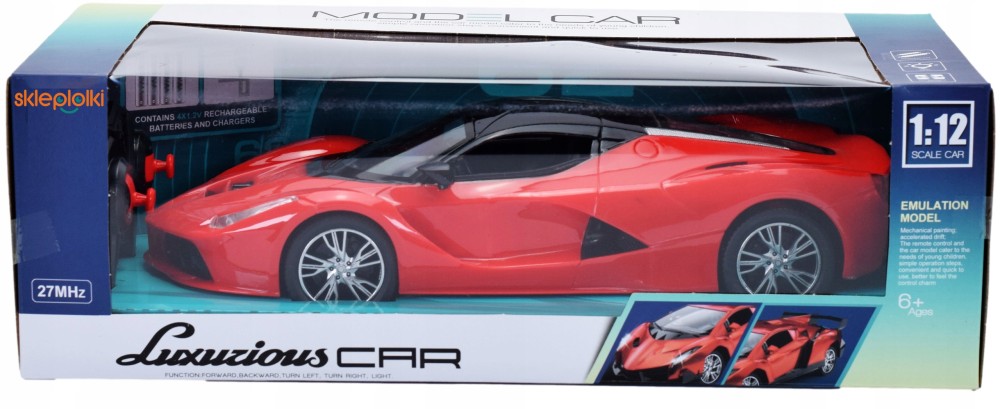 Vă prezentăm o mașină telecomandată la scară 1:12, ușor de utilizat. Design modern și sportiv. Modelul reproduce fidel detaliile unui vehicul real.
