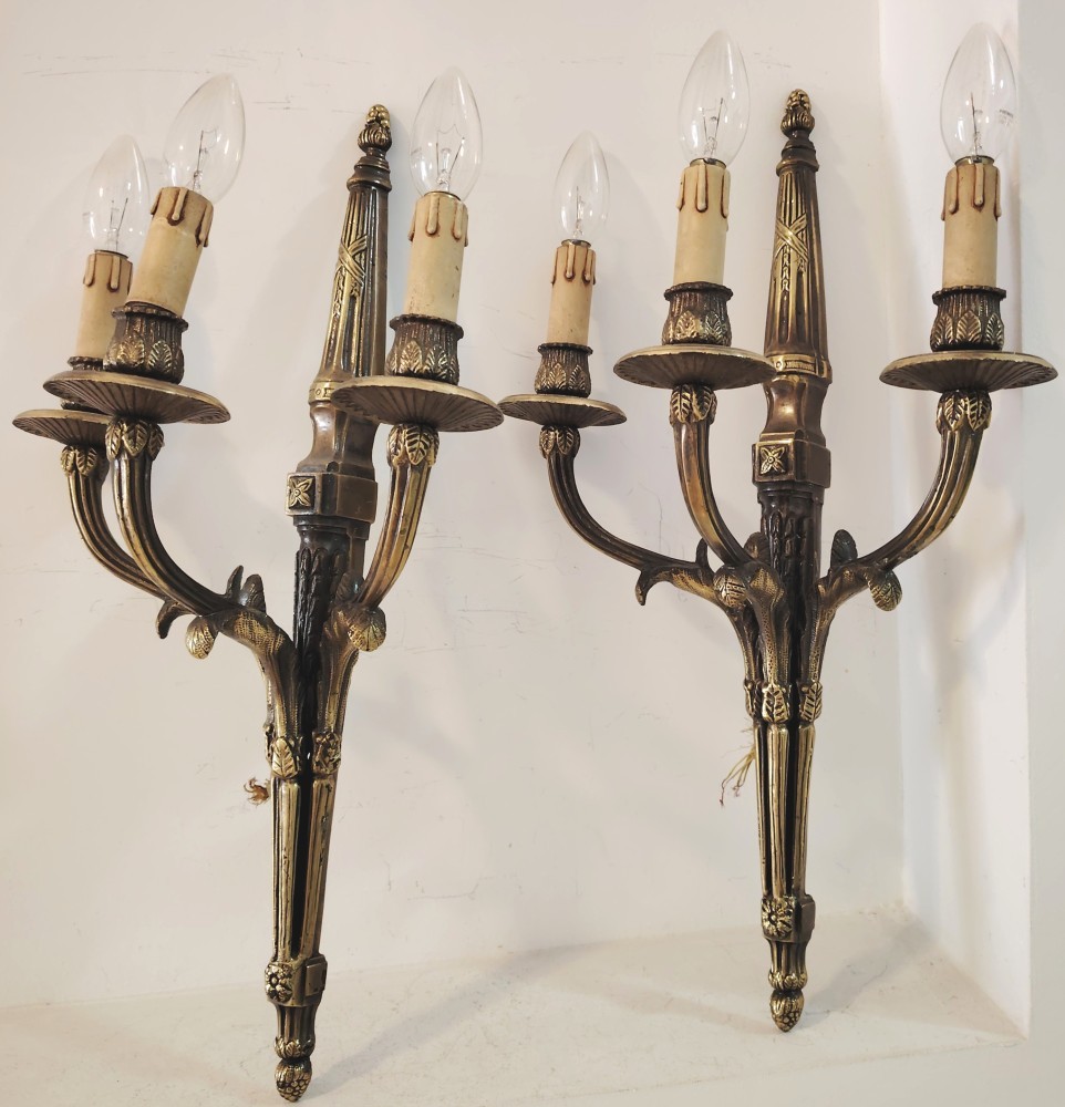 Superbă pereche de aplice dimensiuni mari din bronz masiv in stilul francez Empire