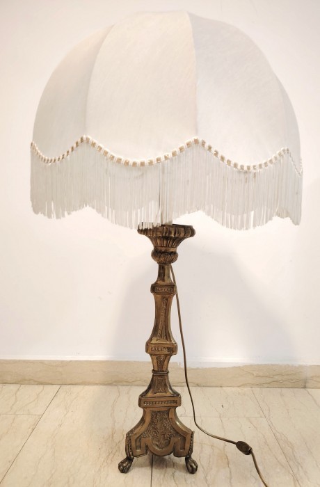Superbă veioza de dimensiuni mari cu talpa din bronz in stilul Baroc ,abajur din material textil de culoare alb