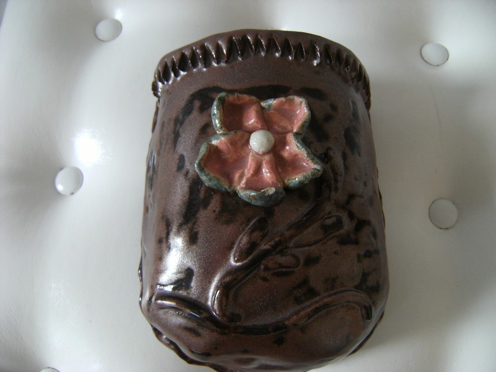 Superba aplica din ceramica in bazorelief cu o draguta floare pe ea, avand dimensiunile de 20X15X11 cm.