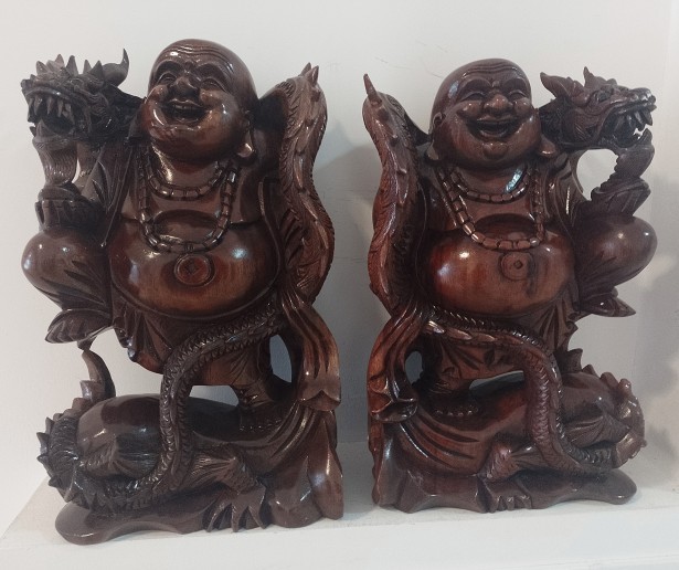 Superbe sculpturi de dimensiuni mari lucrare dintr-o singură bucata de lemn reprezentand Buddha cu dragonul
