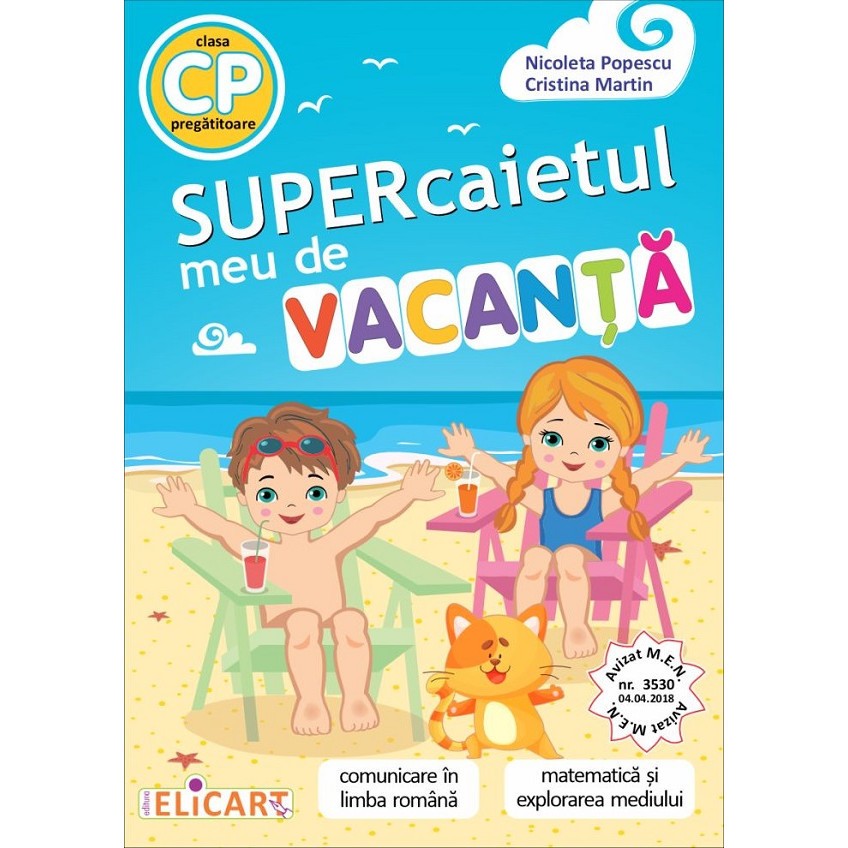 Supercaietul meu de vacanta. clasa pregatitoare. comunicare in limba romana. matematica si explorarea mediului. in vacanta asta nu ne plictisim! avizat m.e.n. prin ordinul nr. 3530 din 04.04.2018 a venit vacanta! cei mici vor avea timp sa se bucure de soare, de plimbari cu bicicleta, de jocuri pe calculator, de excursii la mare sau la munte. in calatoriile lor, nu vor uita insa de acest supercaiet, care le va aduce aminte de tot ce au invatat in timpul anului scolar. gandit ca un caiet interdisciplinar, auxiliarul ii va purta pe copii in lumea povestilor si a desenelor animale, la circ, la spectacol sau la gradina zoologica. cu siguranta cei mici nu se vor plictisi. rezolvand exercitiile si problemele, care au grade diferite de complexitate, elevii vor incepe in toamna clasa i mai bine pregatiti.