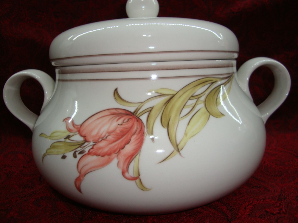 FRUMOASA SUPIERA DIN PORTELAN GOEBEL, ACEASTA ARE INALTIMEA DE 17 CM SI DIMENSIUNILE DE 25 X 17 CM.