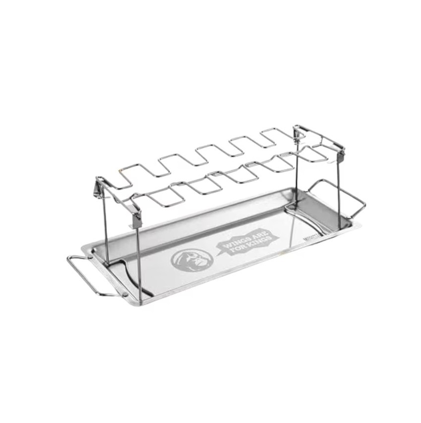 Suport cu tava pentru pulpe Mountain Grillers, 44.4 x 13.9 x 16.5 cm, otel inoxidabil, argintiu