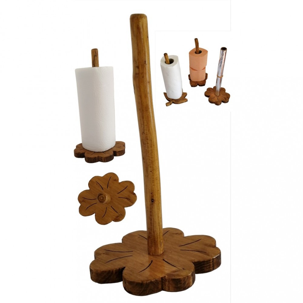Suport de bucatarie pentru role de servetele, realizat manual. Baza suportului este fabricata din lemn de pin, cu un decupaj frumos, rustic, care inveseleste bucataria. Stalpul pentru role permite inlocuirea rapida si usoara a acestora si este realizat din lemn natural de salcam. Dimensiuni ( diametru / inaltime ): 17cm x 27 cm Stare Produs: NOU