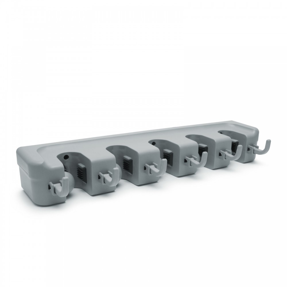 Ideal pt. pastrarea obiectelor de uz general i a sculelor. Pe suport pot fi pastrate ustensilele de curaenie, sculele, etc. Pt. uz interior i exterior. 5 locauri pt. orice fel de ustensile. (diametru coada min. 1,5 - max 3,5 cm) Fixarea se face automat. Fixarea pe perete cu 6 buc. uruburi (accesoriu).