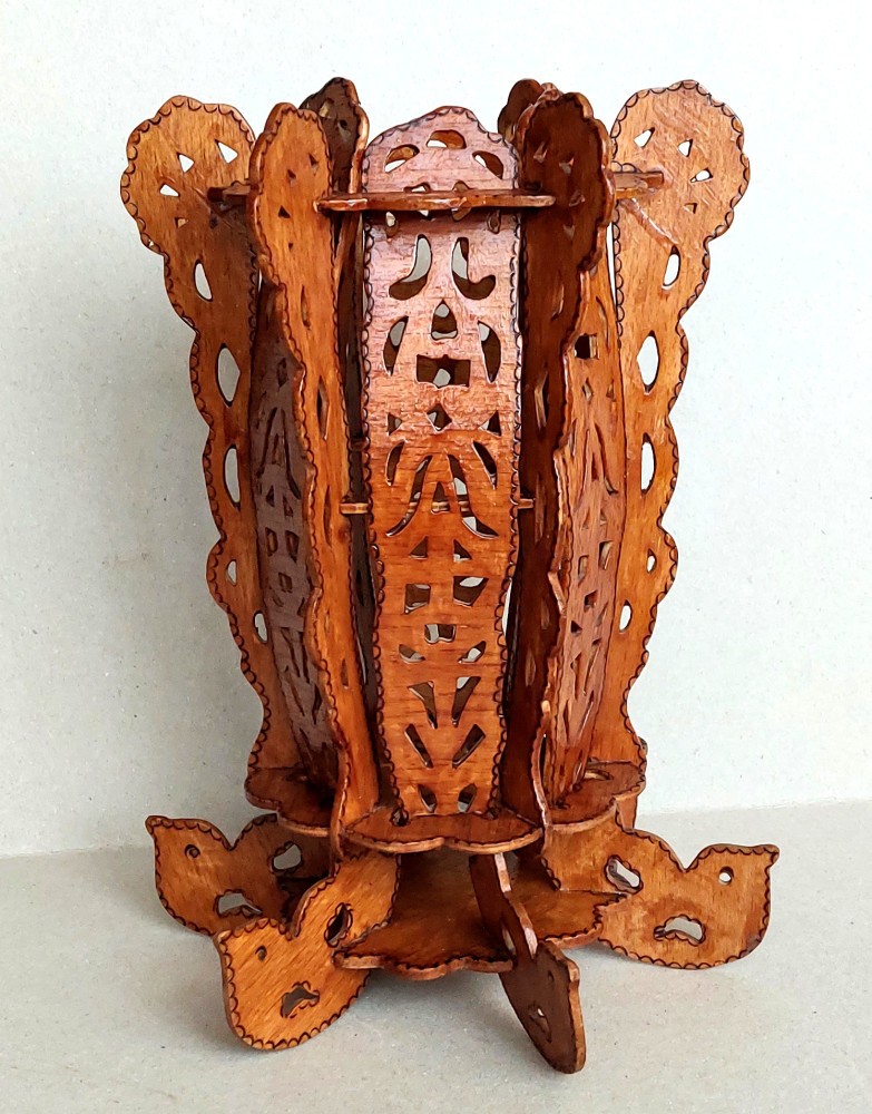 Suport decorativ 8 parti detasabile din placaj decupat cu traforaj si pirogravat